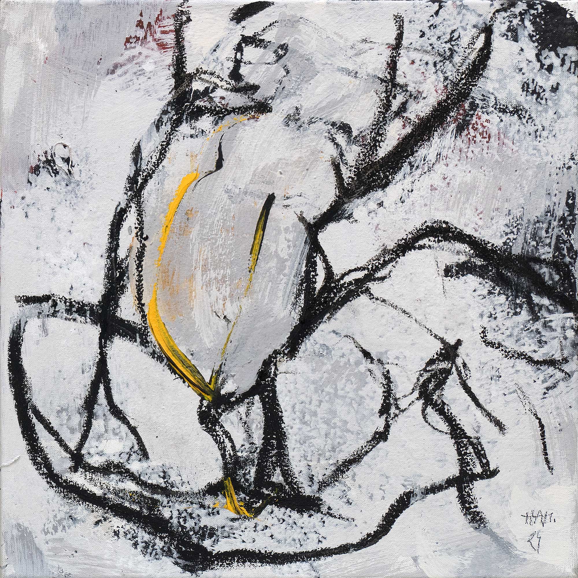 The artist’s central theme is the human body. With expressive lines set in one piece, based on the momentum and strength of his own physicality, Hannes Mlenek places fragments of the figurative on the page. Knowledge of nature is always a point of reference in the artist’s works. However, Mlenek takes his works far beyond this, both in the sense of a concept of thought and content, as well as in their dimension, in that they unmistakably always claim the space for themselves. Hannes Mlenek lives and works in Vienna.