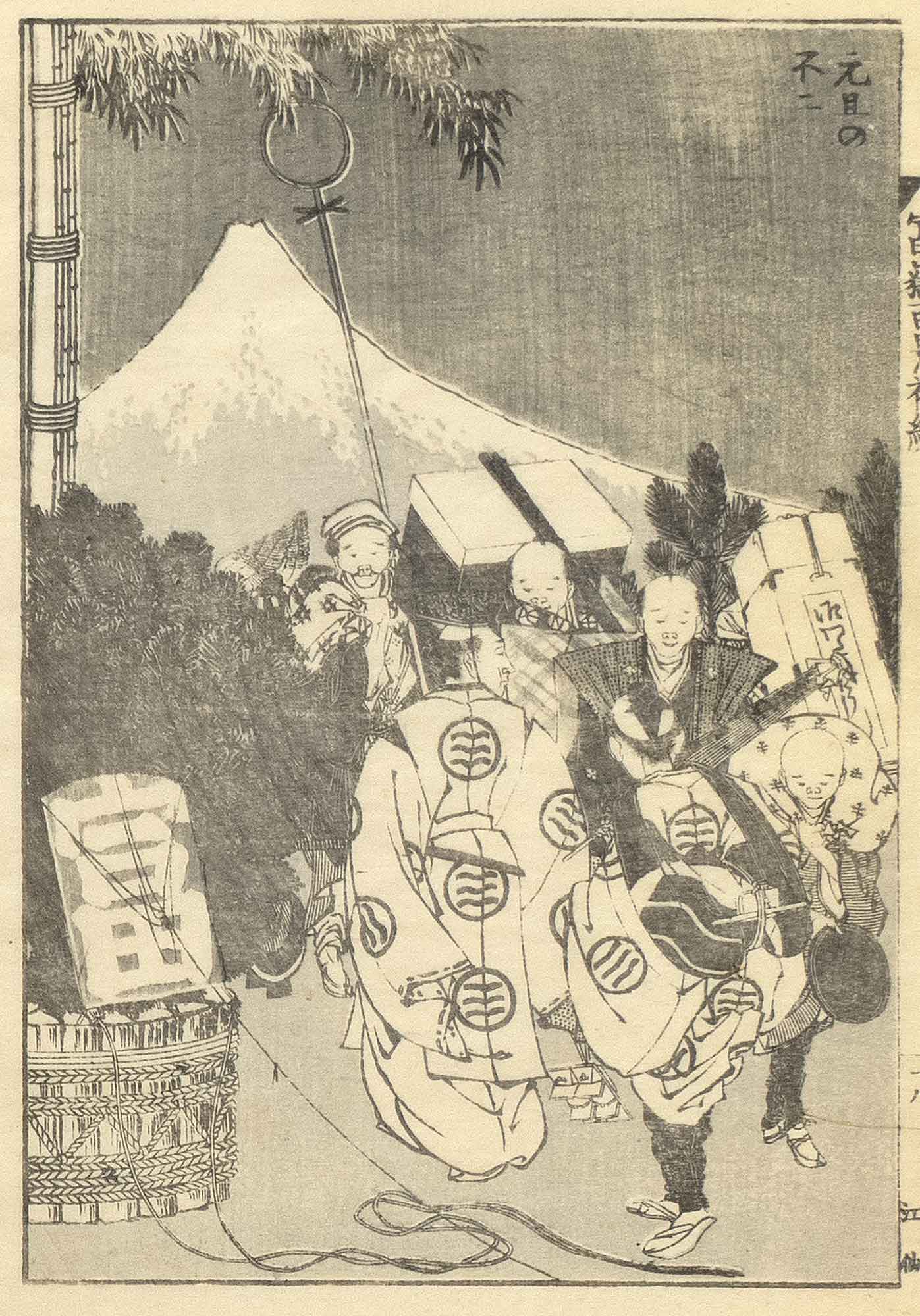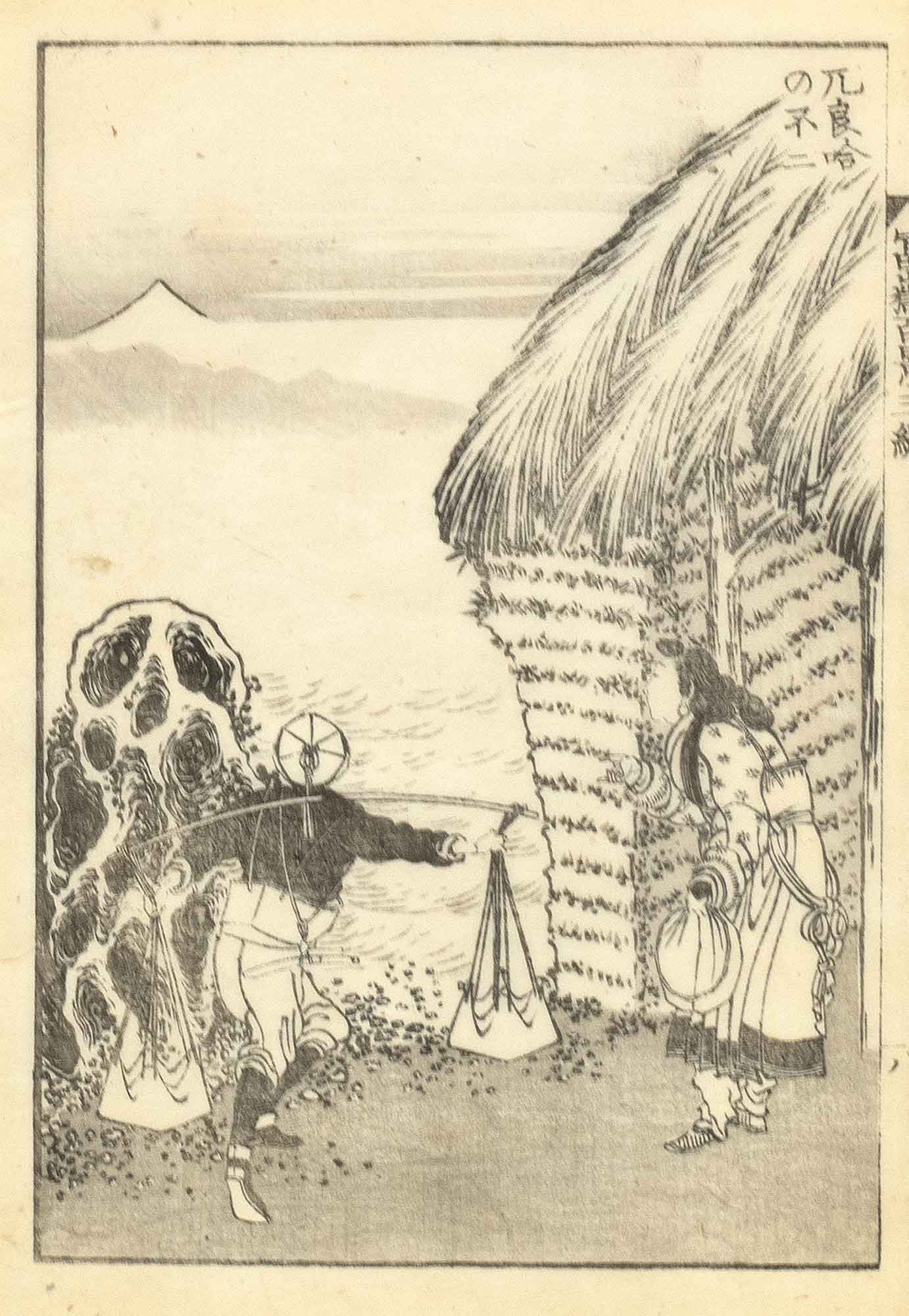 Katsushika HOKUSAI (1760–1849) besuchte die Schule von Katsukawa Shunshō, die seinen künstlerischen Werdegang stark beeinflusste. In seiner langen über 70-jährigen Schaffensperiode fertigte er eine Vielzahl von Holzschnitten, studierte aber auch die Malstile vieler anderer Schulen und die chinesische und westliche Malerei. Das Hauptwerk seiner Farbholzschnitte entstand ab 1820. Sein Werk umfasst alle Themen des Farbholzschnittes. Er schuf Darstellungen schöner Frauen (bijin-ga), Schauspieler-Porträts, Landschaftsbilder, Darstellungen von Vögel und Blumen, Karikaturen, Buchillustrationen und Malmusterbücher. Zu seinen besten Arbeiten zählen seine Malereien (nikuhitsu-ga), seine Gedichte‑, Kalender- und Neujahrsblätter (surimono) seine Skizzenbücher, seine Serie über die „100 Ansichten des Fuji“ und seine Serie der „36 Ansichten des Fuji“.