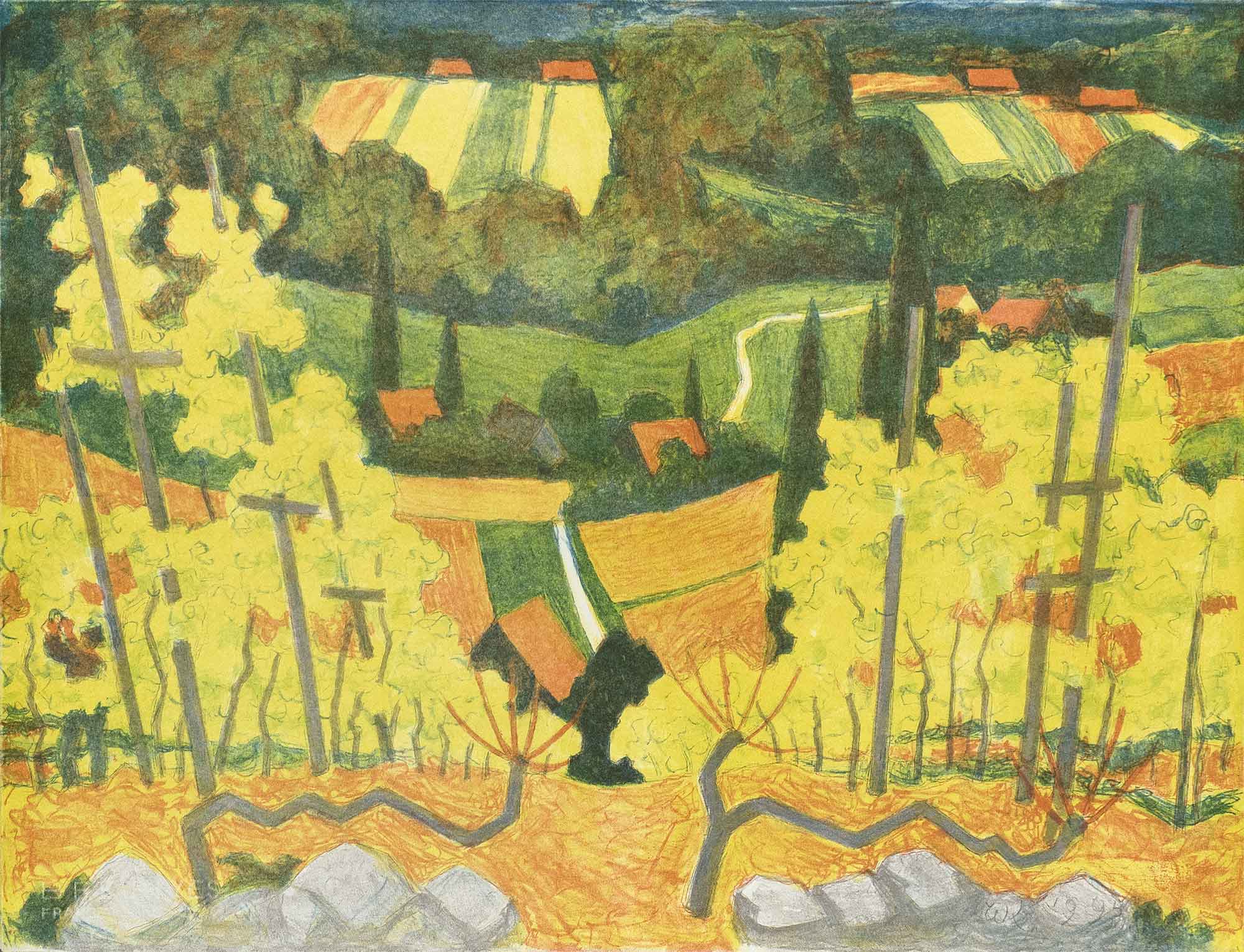 Wilhelm KAUFMANN wurde 1901 in Salzburg geboren. Er studierte von 1919 bis 1923 an der Akademie der bildenden Künste in Wien. 1923 wurde er Schüler von Anton Faistauer und arbeitete mit an dessen Fresken in der Morzger Pfarrkirche bei Salzburg. Studienreisen nach Beligien, Frankreich und England folgten. 1926 war er mit Anton Kolig und Robin Christian Andersen an der Herstellung der Gobelins für das Salzburger Festspielhaus tätig. 1935 war der Künstler mit vier Landschaftsbildern im österreichischen Pavillon der „Exposition universelle & international de Bruxelles“ vertreten. 1937 erhielt Kaufmann den Auftrag für ein Landschaftsfresko im Salzburger Festspielhaus, welches beim Umbau während des Hitlerregimes 1939 zerstört wurde. Ab 1952 bis 1958 lebte und arbeitete Kaufmann als Kunsterzieher und freischaffender Maler in Pennsylvania (USA) und in Kanada. 1963 reiste er für fünf Monate zu Albert Schweitzer nach Lambaréné in Afrika. In den darauffolgenden Jahren beschäftigte sich der Künstler mit den ursprünglichen Lebensweisen und Lebensformen von Naturvölkern. Das zentrale Thema in seinen Werken war stets die Suche nach dem Gleichklang zwischen Natur und Mensch. Wilhelm Kaufmann, der bis ins hohe Alter in seinem Atelier im Salzburger Künstlerhaus tätig war, starb 1999 in Salzburg. 1995 – erste Ausstellung in der Galerie Welz.