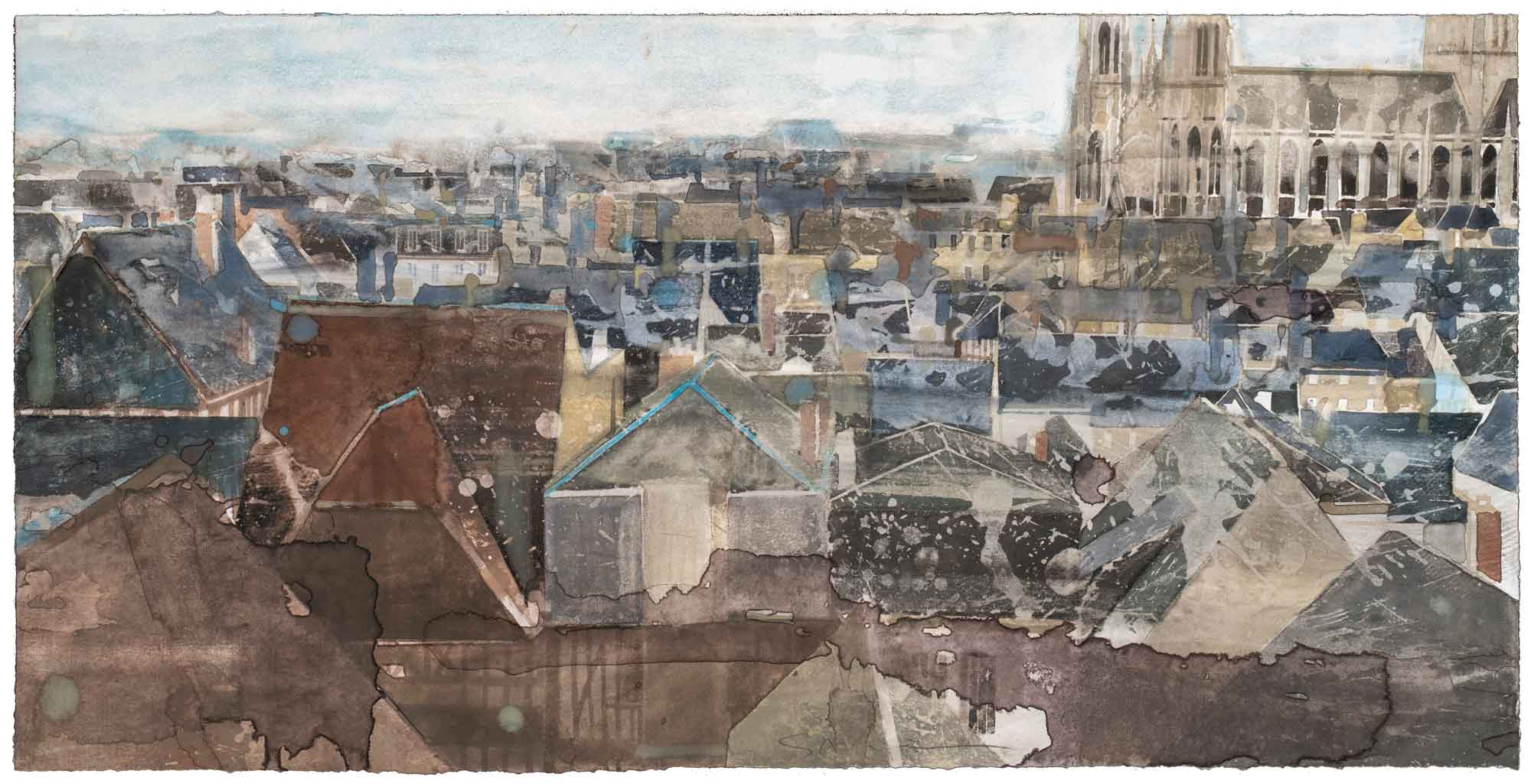 Gottfried SALZMANN wurde 1943 in Saalfelden am Steinernen Meer geboren. Er studierte von 1963 bis 1965 an der Akademie der bildenden Künste in Wien und von 1965 bis 1968 an der Ècole nationale supérieure des beaux arts in Paris. Seit seinen ersten Ausstellungen 1968/69 in Linz, Paris und Salzburg fanden regelmäßig Ausstellungen und Ausstellungsbeteiligungen in europäischen, sowie amerikanischen Galerien und Museen statt. Ab 1970 begann Gottfried Salzmann sich mit der Fotografie zu beschäftigen. 1978 fand die erste Fotoausstellung mit Werken des Künstlers in Saint Germain-en-Laye statt. 1983 reiste Salzmann zum ersten Mal nach New York, ausgedehnte Reiseaktivitäten folgten. Gottfried Salzmann erhielt zahlreiche Preise und Auszeichnungen u. a. den Prix de Dessin Pierre David-Weill, Institut de France, Paris; den Theodor-Körner-Preis, Wien (1972); den Großen Preis der Salzburger Wirtschaftskammer für Graphik (Zeichnung) (1975); den Internationalen Preis für Aquarell, Fondazione Sinaide Ghi, Rom (1977); den Slavi-Soucek-Preis, Salzburg (1996) und das Österreichische Ehrenzeichen für Wissenschaft und Kunst, Wien (2011). Werke des Künstlers hängen in privaten und öffentlichen Sammlungen in Österreich, Frankreich, in der Schweiz, in Liechtenstein, Korea, China, auf den Philippinen und in den USA. Gottfried Salzmann hat sich rasch in der Kunstszene als international anerkannter Aquarellist etabliert. Er beherrscht die Aquarellmalerei wie kaum ein anderer. Durch neue Sichtweisen und Perspektiven gelingt ihm ein Spiel zwischen Gegenständlichkeit und Abstraktion und gibt der Aquarellmalerei neue Impulse. In seinen Werken bringt er die Poesie der Städte und Landschaften zum Vorschein, malt und verwandelt diese. Waren es früher Landschaften, so folgten später Serien aus Großstädten. In seinen Werken wendet er sich verschiedenen Techniken zu und sucht nach Interaktionen mit Zeichnung, Gravur, Fotografie, Acryl und Ölmalerei. In der intensiven Auseinandersetzung mit der Druckgrafik, wo er vielfach experimentiert, entwickelt er auch neue Techniken wie das Photeauforte. Gottfried Salzmann lebt und arbeitet in Paris. 1969 – erste Ausstellung in der Galerie Welz.